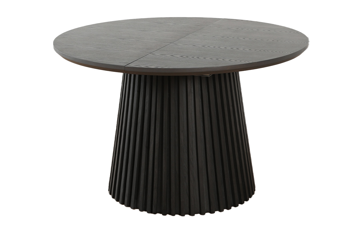 Bordets karakteristiske ben er utført i MDF og kledd med slitesterk folie i samme fargetone som bordplaten. Den vertikale spilingen gir dybde og rytme, og skaper et uttrykk som balanserer rene linjer med myke, organiske former.