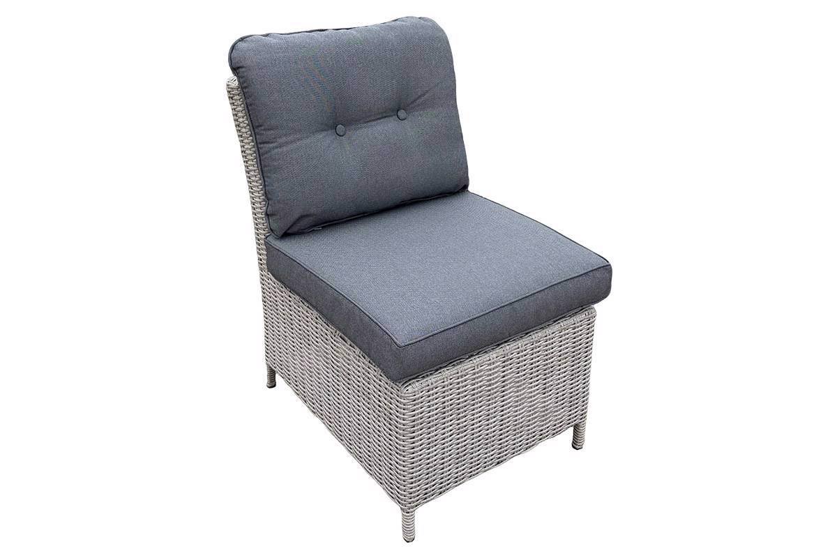 Midtseksjonen måler 57 cm og har håndflettet kunstrotting i lys grå farge, med komfortable grå puter. Den passer perfekt sammen med resten av Calla Anemone-serien, og gir deg frihet til å skape akkurat den hagesofaen du drømmer om.