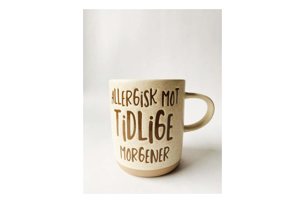 Gjør kaffen litt mer spesiell med vårt stilrene krus med tekst. Enten du vil spre et smil, motivere deg selv eller gi en personlig og morsom gave, er dette kruset et perfekt valg.