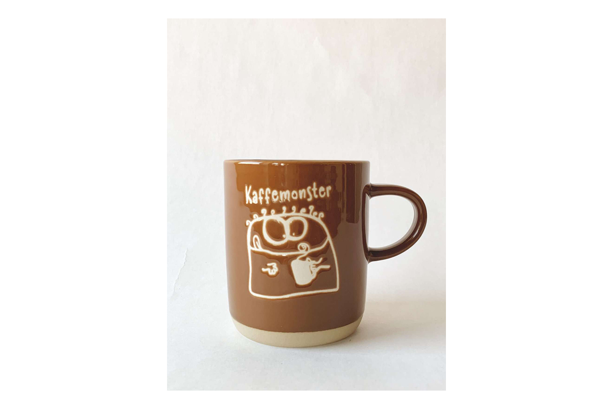 Et flott krus med tekst på en side og gjennomført look med dekorkant i bunn.