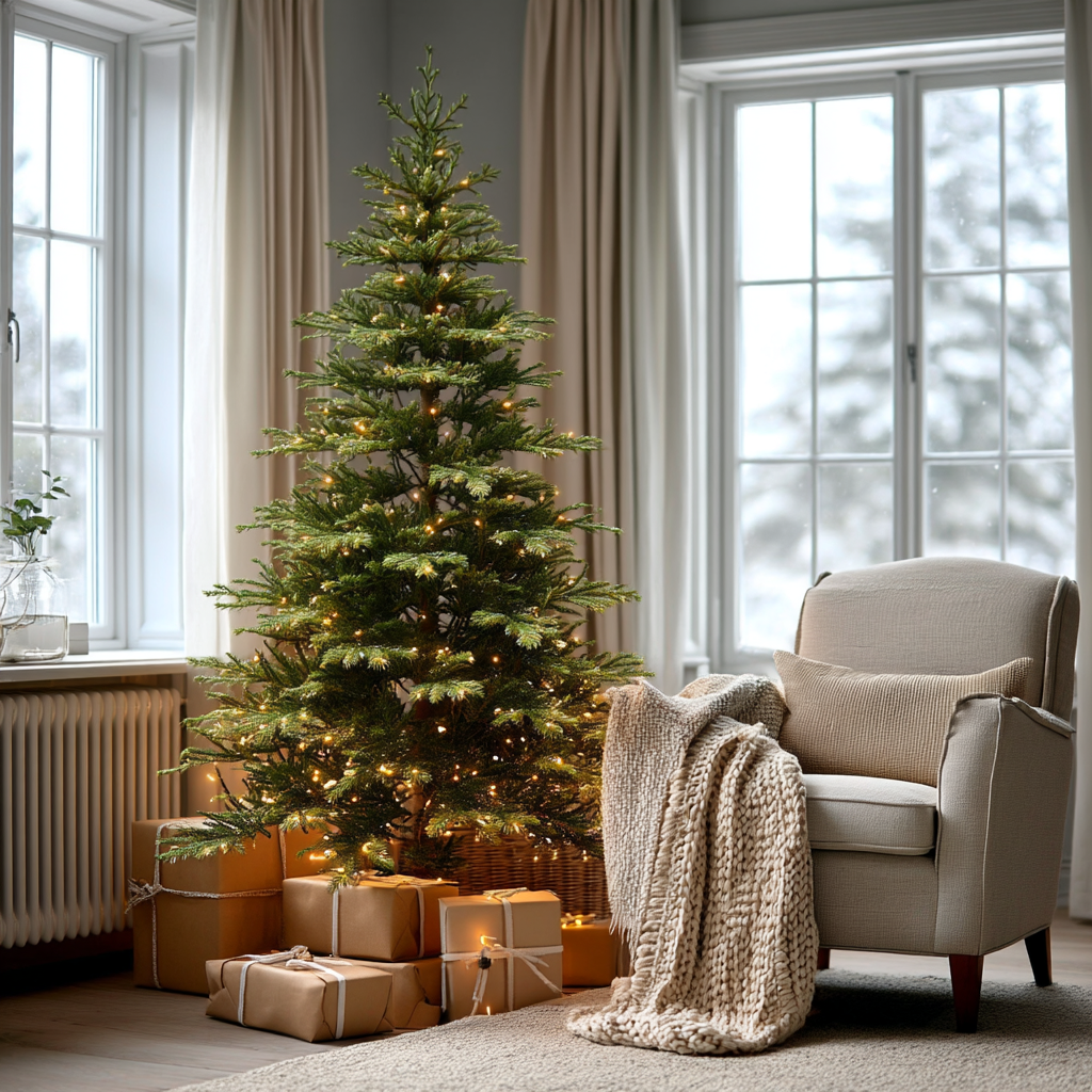 Glem jakten på det “riktige” treet. Et kunstig juletre står rett, symmetrisk og grønt gjennom hele desember – uten at en eneste barnål faller av.