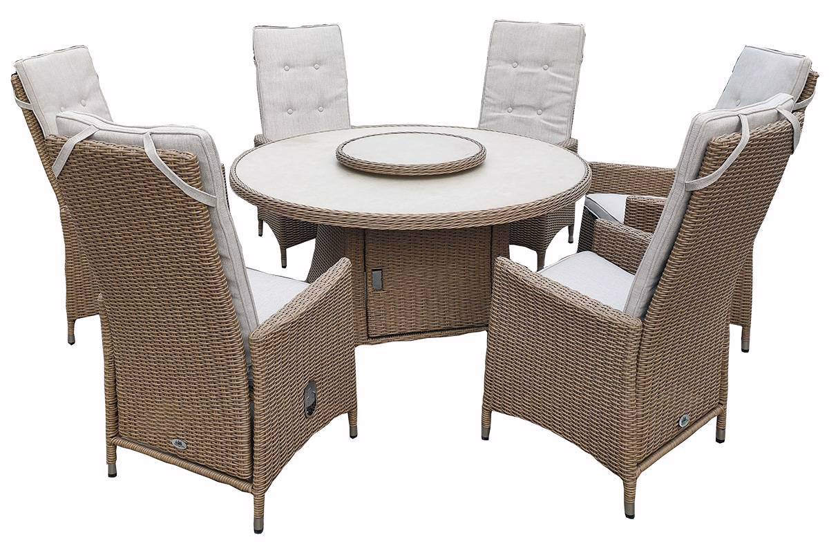 Olea spisegruppe med 6 regulerbare stoler og rundt bord, 142 cm.